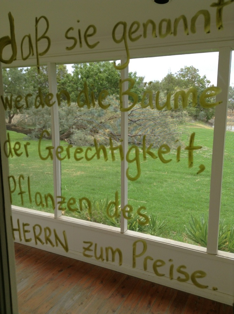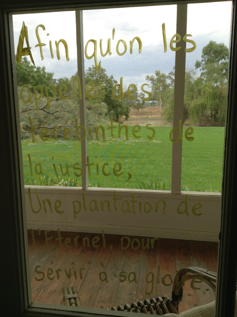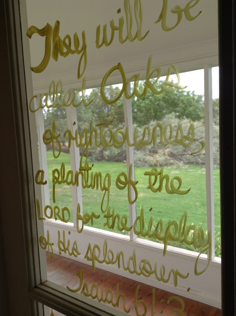 George Macdonald has defined art as “the revelation of the true through the beautiful”, and it is not until I see the fallen tree branch through the chalked study window that I recognise it as art: Truth and Beauty superimposed.